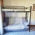 Living room(double sofa bed), Kitchen(electric kettle, toaster, coffee machine, microwave, fridge, freezer, dishes and cutlery), bedroom(single sofa bed), bathroom(shower), Garden Furniture , TV, balcony, parking, swimming pool(shared with other guests), hairdryer