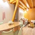 The open-plan electric kitchen is fully equipped with a refrigerator, microwave, freezer, dishwasher, coffee machine, toaster, kettle, and all necessary dishes and utensils—perfect for preparing meals after a day on the slopes.