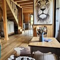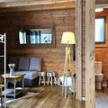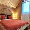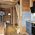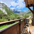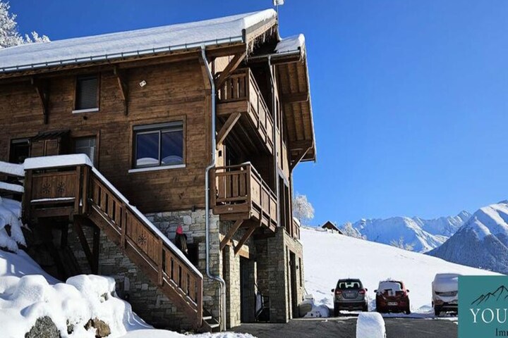 This elegant chalet duplex offers a tranquil retreat with stunning views of the Aiguilles d'Arves. It includes five sleeping areas: two double bedrooms (one with an en-suite shower and balcony), a mezzanine with flexible bed options, and a bunk-bed room. The bright living area features a fully equipped kitchen, dining space, and lounge with TV. Outside, relax on the furnished terrace with a gas barbecue and enjoy the pיtanque court. Small pets are allowed for a fee, provided they are leashed and kept off beds and sofas.