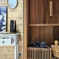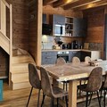 The modern kitchen includes a dishwasher, large fridge, oven, coffee makers, and raclette and fondue sets, catering for up to 11 guests. Amenities include two parking spaces, a ski locker, and end-of-stay cleaning. Sheets and towels are available to rent. Mezzanines are not recommended for young children or older adults. A private sauna (3 hours/day) adds a touch of luxury to this cozy alpine escape.