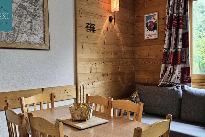 This charming apartment, located on the 3rd floor of a residence in the heart of the Saint Sorlin d’Arves resort, is ideal for a group of up to 6 guests. The property features a sleeping area with a bunk bed, a cozy bedroom with a double bed, and a living room with a sofa bed. The apartment is pet-free, ensuring a peaceful environment for all guests. A ski locker and reserved parking space are included, offering convenience for those planning to hit the slopes. Please note that sheets, towels, and Wi-Fi are optional and can be added for an additional fee.