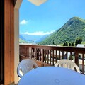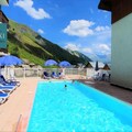 The accommodation is fully equipped with a kitchenette, including a fridge, small oven, dishwasher, electric filter coffee maker, toaster, and raclette grill for a cozy meal. The bathroom and separate toilet provide added convenience. Guests can also enjoy a balcony for outdoor relaxation, and during the summer months, access to the outdoor swimming pool (from July to August) provides a refreshing escape.