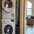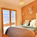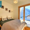 The modern kitchen is fully equipped with a dishwasher, large fridge, oven, coffee makers (filter and pod), kettle, toaster, and raclette and fondue machines. For convenience, there is a washing machine and tumble dryer. The living area features a pellet stove, electric roller shutters, and a balcony with stunning views.