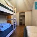 This charming holiday apartment accommodates up to 7 guests, featuring a bedroom with a double bed (140*190cm), a living room with a kitchen and lounge area, and a balcony. Upstairs, you’ll find a mezzanine with a double bed and a single bed, as well as a separate bedroom with a single bed and a bunk bed, perfect for families or groups. The property is non-smoking, and pets are not allowed.