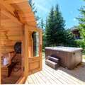 Ground floor: Entrance, Bedroom with bathroom(single bed, single bed, bath tub, toilet), Bedroom with bathroom(single bed, single bed, bath tub, toilet), Bedroom with bathroom(single bed, single bed, shower, toilet), ski storage(ski boot heaters), hot tub, sauna, terrace