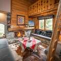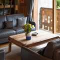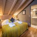 Etienne has a large open plan living room on the first floor with a lovely large wooden dining table to seat everyone. There is another living area, the fireplace and TV corner, here you can relax whilst enjoying the gentle crackling of the fireplace and chilling in front of the TV or listening to music. Please note that all rooms are equipped with Italian beds, which offer the choice between two single beds and a double bed, each of the 7 bedrooms has its own private bathroom. There is a large driveway for up to four vehicles, which you can park in front of the chalet.
