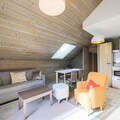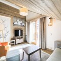 This luxurious five-star apartment in the heart of Mיribel offers two spacious bedrooms, one with a double bed and the other with four single beds, perfect for families or groups. The property can accommodate up to six guests and includes a sofa bed in the living room. Pets are allowed for an additional charge. The apartment also includes a covered parking space.