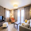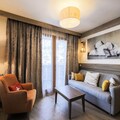 The apartment includes a fully equipped kitchen, perfect for preparing meals after a day on the slopes. Relax and unwind in the luxurious amenities of the residence, including an indoor swimming pool, sauna, hammam, and outdoor hot tub. For additional relaxation, guests can enjoy the Deep Nature Spa with preferential rates. The residence also features a 24-hour reception and bar, ensuring a premium holiday experience.