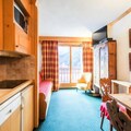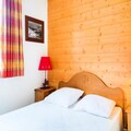 This cozy 28m² apartment offers comfortable accommodation for up to four guests. It features a living room with a single sofa bed and a trundle bed, a kitchen area open to the living room, a bedroom with a double bed, a bathroom with a bathtub, and a separate toilet. The apartment includes a ski locker, storage space, and a TV for aprטs-ski relaxation.