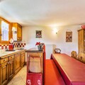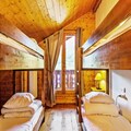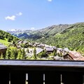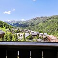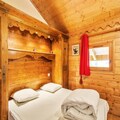 This spacious chalet-style apartment in the French Alps accommodates up to 9 guests with three bedrooms, including two with double beds and one with four single bunk beds. There is also a mezzanine with a queen-size bed. The living area features a sofa, dining table, and three bathrooms. The apartment includes a private balcony with stunning mountain views and is pet-friendly (additional fee applies), ensuring a comfortable retreat for families or groups.