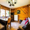 This cozy chalet-style apartment comfortably accommodates 3-4 people with one double bedroom and a second bedroom featuring a convertible banquette bed, which can transform into a double. The living area has a pull-out couch, perfect for additional guests. Pet-friendly (additional fee) and equipped with essential amenities, the apartment is ideal for families or small groups seeking a comfortable alpine getaway.