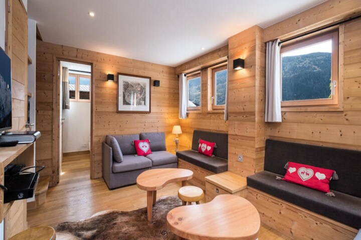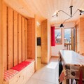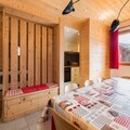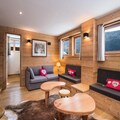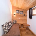 In the heart of Méribel Village, this charming 79m² chalet offers a perfect alpine retreat for families and friends seeking both comfort and convenience. With its prime location just 200 meters from the slopes and mere steps from local shops, you’ll find everything you need for a seamless mountain getaway. Whether you’re here to carve through the pristine snow of the 3 Vallées ski area or to unwind in the serene alpine atmosphere, this chalet provides the ideal setting for your holiday. \n\nThe chalet is thoughtfully designed across two levels, accommodating up to eight guests in four cozy bedrooms. On the ground floor, you’ll find a welcoming living room with a TV, two bedrooms with en-suite bathrooms, and a practical storage room with a fridge and freezer. The upper level features a fully equipped kitchen that opens onto a dining area, perfect for sharing meals after a day on the slopes. Two additional bedrooms, each with en-suite facilities, ensure privacy and comfort for all. Modern amenities such as a ski room with a boot dryer, private parking for two cars, and complimentary WiFi add to the convenience of your stay. \n\nStep outside, and you’re just moments away from the Golf chairlift, which provides direct access to the world-renowned 3 Vallées ski area. Nearby, you’ll find a bakery, supermarket, restaurants, and a sports shop, ensuring all your needs are met. For added ease, a free shuttle bus runs to the resort center from early morning until late at night. Whether you’re here for the thrill of skiing, the beauty of summer hikes, or simply to relax in a picturesque mountain village, this chalet offers an unforgettable experience in the heart of the French Alps.