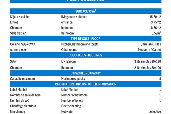 High above the picturesque slopes of Méribel-Mottaret, this charming apartment in the Plein Soleil residence offers a cozy alpine retreat for those seeking the perfect ski getaway. Imagine waking up to the crisp mountain air, stepping onto your north and east-facing balcony, and soaking in the serene beauty of the French Alps. With direct ski-in/ski-out access, the adventure begins right at your doorstep, making it ideal for both seasoned skiers and those new to the slopes. The residence's prime location places you in the heart of Mottaret, just steps from local shops and dining options, ensuring convenience and charm in equal measure. \n\nDesigned to accommodate up to four guests, this 33m² apartment combines comfort and practicality. The living room features two cozy sofa beds, while the bedroom offers two single beds, perfect for families or small groups. The kitchenette is equipped with modern amenities, including a combination microwave oven, refrigerator, dishwasher, and ceramic hobs, allowing you to prepare hearty meals after a day on the slopes. A flat-screen TV and free Wi-Fi in the residence’s lounge ensure entertainment and connectivity during your stay. The apartment is non-smoking and pet-free, offering a clean and tranquil environment for relaxation. \n\nBeyond the residence, the Chalets cable car provides seamless access to the Hameau and Laitelet areas, operating from early morning until late evening with complimentary use. Whether you’re exploring the expansive ski terrain or enjoying après-ski activities, Méribel-Mottaret offers a vibrant mix of adventure and leisure. The nearby shops and restaurants add to the convenience, while the stunning alpine views create a backdrop for unforgettable memories. \n\nChoose this charming apartment for a quintessential Méribel experience, where comfort meets the thrill of the mountains. Whether you're here for skiing, relaxation, or simply to bask in the beauty of the Alps, this residence promises a holiday to remember.