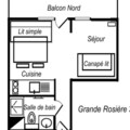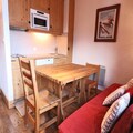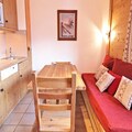 The apartment, rated 2 stars and bearing the Méribel Label for its charm, is designed to comfortably host 2 to 3 guests. Its divisible layout creates a sense of privacy, with a double sofa bed in the living room and a single sofa bed in the dining area. The open kitchenette is fully equipped with ceramic hobs, a refrigerator, microwave with grill, dishwasher, and essential appliances like a coffee maker and toaster. After a day on the slopes, unwind in the cozy living space or step onto the north-facing balcony to soak in the crisp alpine air. Modern touches like a flat-screen TV and free Wi-Fi (subject to availability) ensure a comfortable stay.