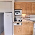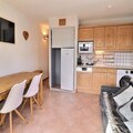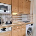 Inside, the apartment is thoughtfully designed to accommodate up to six guests. The living room features a comfortable Rapido sofa bed, while the bedroom offers a cozy double bed. A separate cabin with bunk beds provides additional sleeping space, making it perfect for families or small groups. The open-plan kitchenette is equipped with modern amenities, including a Nespresso machine, ceramic hobs, and a washer-dryer, ensuring all the comforts of home. After a day on the slopes, unwind on the northeast and south-facing terrace or relax in the living area with the Smart TV and free internet access.