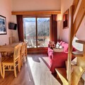 High above the shimmering slopes of Méribel-Mottaret, this charming alpine retreat offers a cozy haven for ski enthusiasts and nature lovers alike. With its south-facing balcony, you’ll wake up to breathtaking views of the snow-dusted peaks, ready to embrace the crisp mountain air and endless adventures that await. Whether you’re here to carve through pristine powder or simply soak in the serene beauty of the French Alps, this residence is your gateway to unforgettable moments. \n\nDesigned for up to six guests, the apartment spans two levels and features a warm, inviting ambiance. The living room is perfect for relaxing after a day on the slopes, while the kitchenette comes fully equipped with modern amenities, including a dishwasher, ceramic hobs, and a coffee maker. The mezzanine offers a cozy double sofa bed, while the attic-style bedroom provides a tranquil retreat with a double bed. A separate cabin with bunk beds ensures comfort for families or groups of friends. With two bathrooms, a flat-screen TV, and thoughtful touches throughout, this space combines convenience with alpine charm. \n\nLocated directly on the slopes, you can ski straight onto the red Aigle run, leading to the main ski lift departure point. For shopping and dining, the nearby center is easily accessible via an inclined elevator or a short walk. The Châtelet shuttle stop provides additional connectivity, making it simple to explore the vibrant Méribel area. \n\nWhether you’re chasing powder in winter or hiking through lush trails in summer, this residence invites you to experience the magic of the Alps in every season. Let the majestic peaks and tranquil atmosphere inspire your next adventure.