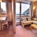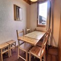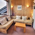Designed to accommodate up to eight guests, this 43m² duplex apartment combines practicality with comfort. The living room features two single sofa beds, while the dining area offers a cozy space for shared meals. The kitchenette is equipped with modern appliances, including a combination microwave oven, refrigerator, and dishwasher, ensuring you have everything needed for a hassle-free stay. Upstairs, the mezzanine hosts three bunk beds, complemented by a cabin bedroom loft with a double bed and an additional bedroom with two single beds. Two bathrooms, one with a shower, provide convenience for larger groups, and the north-facing balcony invites you to unwind with views of the alpine surroundings.