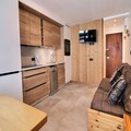 High above the enchanting valley of Méribel-Mottaret, this cozy studio offers a perfect retreat for two, blending alpine charm with modern convenience. Imagine waking up to the crisp mountain air and stepping out onto your south-facing balcony to soak in the serene views of the surrounding peaks. Whether you're here to carve through pristine slopes or simply unwind in the heart of the French Alps, this property ensures a memorable stay. \n\nCompact yet thoughtfully designed, the studio features a comfortable living area with a set of trundle beds, a well-equipped kitchenette with ceramic hobs, a dishwasher, and all the essentials for preparing hearty meals after a day on the slopes. The shower room is modern and functional, and the flat-screen TV and free Wi-Fi (subject to availability) add to the comfort of your stay. Located on the second floor of the Roc de Tougne residence, the studio is easily accessible, although there is no elevator. \n\nThe location is a skier's dream, with direct access to the slopes via the ski lockers. Take the gentle green Perdrix run to reach the main ski lift departure point, where your alpine adventures begin. The ESF meeting point is just steps away, and the Mottaret shopping center, with its array of shops and dining options, is only 100 meters away via the stairs. \n\nWhether you're seeking thrilling days on the slopes or tranquil evenings in the mountains, this studio offers the ideal base for your alpine escape. With its unbeatable location and cozy ambiance, it invites you to experience the magic of Méribel-Mottaret in every season.