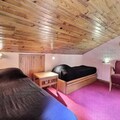Inside, the apartment spans 55 square meters and is thoughtfully designed to accommodate up to eight guests. The cozy living room features a sofa bed, three armchairs, and a fireplace, creating a warm and inviting space to unwind after a day on the slopes. The kitchen is fully equipped with modern appliances, including ceramic hobs, a refrigerator, dishwasher, oven, microwave, and essential small appliances like a coffee maker and toaster. The sleeping arrangements are versatile, with two bedrooms and a mezzanine loft offering a mix of single and double beds to suit families or groups of friends. The property also boasts two bathrooms, one with a washing machine, and a separate toilet for added convenience.