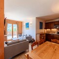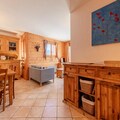 Step inside this cozy 63m² ground-floor apartment, thoughtfully designed to accommodate up to six guests. The spacious layout includes three inviting bedrooms: two with comfortable double beds (one featuring an en-suite shower) and a third with two single beds, perfect for families or groups of friends. The well-equipped kitchenette boasts modern appliances such as an electric stovetop, oven, microwave, dishwasher, and refrigerator, making it easy to prepare delicious meals after a day of exploration. Relax in the bright living area or step out onto the large south-facing terrace to soak in the alpine sunshine and fresh mountain air.