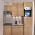 Inside, the 40 m² apartment is thoughtfully designed to accommodate up to four guests. The living room features a comfortable double sofa bed, while the separate bedroom offers a cozy double bed for restful nights. The west-facing balcony is the perfect spot to unwind after a day of adventure, offering breathtaking views of the surrounding peaks bathed in golden light. The kitchen is fully equipped with modern appliances, including a ceramic hob, oven, microwave, dishwasher, and refrigerator with a freezer, making it easy to prepare delicious meals during your stay.