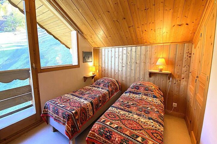 High above the enchanting valley of Méribel, this spacious alpine retreat invites you to experience the magic of the French Alps in every season. With panoramic views of snow-dusted peaks and the lively snow front, this 100m² apartment combines comfort and charm, offering an unforgettable escape for families and groups seeking the perfect blend of adventure and relaxation. The residence is ideally situated in La Chaudanne, at the foot of the slopes and mere steps from the ski lifts, ski school, daycare, and shuttle bus stop, ensuring effortless access to the heart of Méribel’s world-class skiing domain. \n\nInside, the apartment boasts a cozy yet elegant alpine-inspired décor. The open-plan living room, bathed in natural light, features a welcoming sofa area with a TV and a dining table for six, perfect for sharing meals and stories after a day on the slopes. The fully equipped kitchen includes electric hobs, a combination oven/microwave, a dishwasher, and a refrigerator, making it easy to prepare hearty mountain meals. With three bedrooms—two offering flexible twin beds and one with a double bed—plus two bathrooms and a separate toilet, the layout ensures comfort and privacy for all guests. Additional amenities include a fireplace for cozy evenings, a ski locker, and a covered parking space. \n\nBeyond the apartment, Méribel’s vibrant village life awaits. From charming restaurants serving Savoyard specialties to boutique shops and après-ski hotspots, everything is within reach. In summer, the valley transforms into a haven for hikers, cyclists, and nature lovers, with trails winding through lush meadows and alpine forests. Whether you’re carving down pristine slopes or exploring the breathtaking landscapes of the Trois Vallées, this residence offers the perfect base for your alpine adventure. Let the allure of Méribel captivate you and create memories that will last a lifetime.