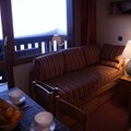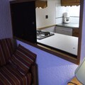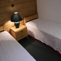 Inside, the apartment is thoughtfully designed for comfort and convenience. The living room features two single sofa beds and a trundle bed, ideal for relaxing after a day on the slopes. A separate bedroom with two single beds ensures restful nights, while the fully equipped kitchen—with electric hob, oven, microwave, dishwasher, and more—makes meal preparation a breeze. Modern amenities like a television, ski locker, and non-smoking policy enhance your stay, while additional services such as linen sets and end-of-stay cleaning can be reserved in advance.