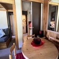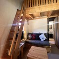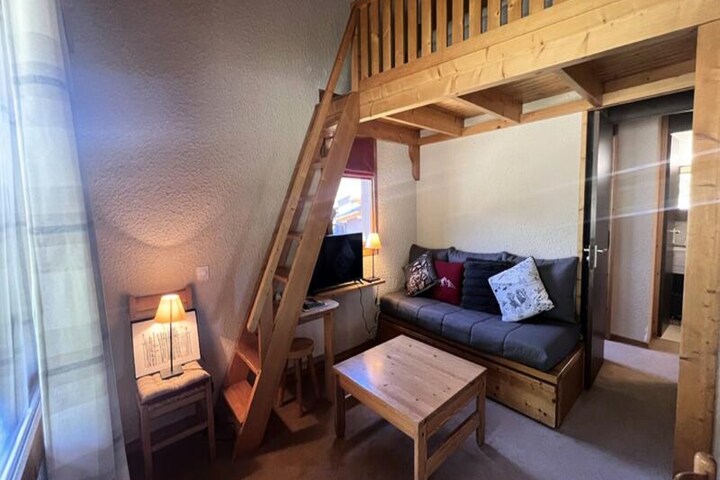 High above the picturesque Méribel Mottaret, this charming alpine retreat offers a perfect blend of comfort and convenience for your mountain getaway. Situated in the heart of the Laitelet district, the residence Le Nantchu provides direct access to the slopes, making it a dream destination for ski enthusiasts. From your private balcony, take in the crisp mountain air and stunning views of the surrounding peaks as you prepare for a day of adventure. \n\nInside, the apartment is thoughtfully designed to accommodate up to six guests. The living room features a cozy sofa bed and pull-out bed, while the bedroom offers a plush double bed for restful nights. The mezzanine, accessible via a steep staircase, provides an additional sleeping area, perfect for older children or adults. The sloped ceiling adds a touch of alpine charm, creating a warm and inviting atmosphere. A fully equipped kitchen, complete with an electric hob, oven, dishwasher, refrigerator, toaster, and coffee maker, ensures you have everything needed to prepare hearty meals after a day on the slopes. Additional amenities include a separate bathroom and toilet, a ski locker, and a non-smoking, pet-free environment for a peaceful stay.\n\nThe Hameau du Mottaret neighborhood is a skier’s paradise, offering unparalleled access to the slopes and a variety of shops, restaurants, and bars. Whether you need to pick up groceries, rent equipment, or enjoy a delicious meal, everything is just steps away. The free Méribus shuttle or the \