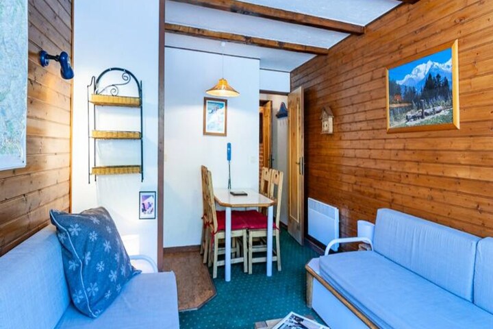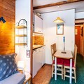 Where snow-dusted peaks meet serene alpine charm, this cozy studio in Méribel Mottaret offers a perfect retreat for families and couples alike. Imagine waking up to the crisp mountain air, stepping onto your balcony to admire the breathtaking views, and knowing the slopes are just a few steps away from your door. Located in the Pralin residence, this property combines convenience with comfort, making it an ideal base for exploring the world-renowned Three Valleys ski area. Whether you're here for winter sports or summer hikes, the surrounding beauty will captivate you. \n\nInside, the studio is thoughtfully designed to maximize space and comfort. The living room features two sofa beds and a television, creating a welcoming area to relax after a day of adventure. A separate sleeping area with bunk beds ensures privacy and practicality for families. The kitchenette is fully equipped with modern appliances, including an electric hob, combi oven, dishwasher, refrigerator, and Nescafé Dolce Gusto coffee maker, making it easy to prepare meals. The bathroom is compact yet functional, and the property includes ski locker access and an elevator for added convenience. Additional services such as linens, towels, and baby equipment can be arranged to enhance your stay. \n\nSituated at the foot of the slopes, the residence is opposite the kindergarten and just 300 meters from the Châtelet shopping mall and resort center. In winter, enjoy direct access to pristine ski runs, while summer brings opportunities for hiking, cycling, and exploring the lush alpine landscapes. Méribel Mottaret’s new residential area offers tranquility while keeping you close to essential amenities. Reserve a parking space for added ease and embrace the charm of this picturesque mountain retreat. Whether you seek thrilling adventures or peaceful relaxation, this studio is your gateway to unforgettable alpine memories.