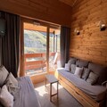 High above the picturesque valley of Méribel Mottaret, this charming alpine apartment offers a cozy retreat for families and groups seeking a memorable mountain escape. With its prime location on the 11th floor of the Le Pralin residence, you’ll enjoy breathtaking views and direct access to the slopes, making it an ideal choice for ski enthusiasts and nature lovers alike. The serene ambiance of this modern residential area provides the perfect balance of tranquility and convenience. \n\nThe apartment comfortably accommodates up to six guests, featuring a living room with two sofa beds, a trundle bed, and a west-facing balcony where you can unwind after a day of adventure. The cabin bedroom with bunk beds and a master bedroom with a double bed and en-suite bathroom ensure restful nights for everyone. The fully equipped kitchenette includes a ceramic hob, combi oven, dishwasher, and more, allowing you to prepare hearty meals with ease. Additional amenities such as a ski locker, elevator, and optional services like linens and end-of-stay cleaning ensure a hassle-free stay. \n\nLe Pralin residence is perfectly situated at the foot of the slopes, directly across from the kindergarten and just steps from the Châtelet shopping center. The resort center, with its vibrant shops and dining options, is only 300 meters away, offering everything you need within easy reach. In summer, the area transforms into a haven for hikers and outdoor enthusiasts, with trails and breathtaking vistas waiting to be explored. \n\nWhether you’re here to carve through pristine snow or soak in the alpine beauty, this apartment provides the ultimate base for creating unforgettable memories in the heart of the French Alps.