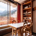 In the heart of Méribel Mottaret, this charming apartment on the 5th floor of the Le Ruitor residence offers a cozy alpine retreat with unparalleled convenience. Imagine waking up to the crisp mountain air, stepping out onto your private balcony, and taking in the breathtaking views of the surrounding peaks. This is your gateway to one of the most renowned ski destinations in the French Alps, where adventure and relaxation blend seamlessly. \n\nThe apartment is thoughtfully designed to maximize comfort and functionality. The living room features a double bed that slides under a partition, a set of bunk beds, and a television, creating a versatile space for up to four guests. The kitchenette is fully equipped with a stovetop, oven, Nespresso coffee maker, dishwasher, and refrigerator, making it easy to prepare meals after a day on the slopes. A bathroom with a toilet and access to a ski locker and elevator complete the amenities, ensuring a hassle-free stay. Please note, this is a non-smoking property, and pets are not allowed.\n\nStep outside, and you'll find yourself in the vibrant center of Méribel Mottaret. The ESF ski school, shops, bars, restaurants, and even a cinema are all just moments away. Whether you're a seasoned skier or a beginner, the proximity to the slopes and ski lifts makes this an unbeatable location for winter sports enthusiasts. In the summer, the area transforms into a haven for hikers and nature lovers, offering endless trails and stunning alpine landscapes.\n\nWith additional services like sheet and towel rentals, end-of-stay cleaning, and baby equipment available upon request, your stay will be as comfortable as it is memorable. Whether you're here for the thrill of skiing or the tranquility of the mountains, this apartment is the perfect base for your alpine adventure.