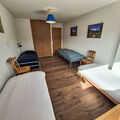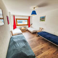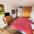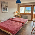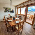 "Crans-Léman 5", 3-room apartment 100 m2 on 2 levels on 2nd floor. Bright, comfortable and cosy furnishings: living/dining room with open-hearth fireplace, dining table and cable TV. Exit to the balcony. Open kitchen (oven, dishwasher, 4 induction hot plates, toaster, kettle, microwave, freezer, electric coffee machine, Capsules for coffee machine (Nespresso) extra, raclette grill, fondue Set (chinoise, cheese)). Sep. WC. Upper floor: 1 room with 2 beds (120 cm, length 190 cm), TV. Exit to the balcony. 1 room with 2 beds (90 cm, length 200 cm), 1 pull-out bed (2 pers. 2 x 90 cm, length 200 cm). Bath/WC. 2 balconies, south facing position. Balcony furniture. Very beautiful view of the mountains and the countryside. Facilities: washing machine, iron, hair dryer. Internet (WiFi, free). Parking space n 17 (fenced 1 car) at the house. Please note: non-smokers only. Maximum 1 pet/ dog allowed.