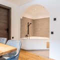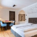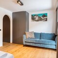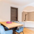 Living/bed room(double bed, double sofa bed, TV, dining table, bath tub), bedroom(double bed), bathroom(shower, toilet, hairdryer), fitness room(fitness equipment), Internet access, boiling water tap, toaster, coffee machine, fridge, balcony, heating(electric), parking, swimming pool(shared with other guests, heated), lift
