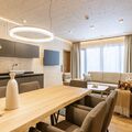 Enjoy the ultimate relaxation with access to a private sauna, complete with an additional shower. The suite also boasts a cozy outdoor bathtub on the balcony or terrace, perfect for unwinding after a day on the slopes. Guests can indulge in a variety of dining options, from breakfast served directly at the resort to savory dishes, pizzas, and pastas at the in-house resort restaurant. The suite also features modern amenities like a coffee capsule machine, kettle, fridge, and a range of kitchen essentials for your convenience.