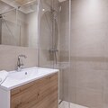 This apartment offers a luxurious and spacious accommodation option for your holiday, with 88 m² of space and the ability to host up to 7 guests. Featuring two bedrooms, the first room includes a flexible Modul bed that can adapt to your needs, functioning as a double bed or converting into a family or triple room with an additional fold-out single bed. The second bedroom is equipped with a classic double bed and a double sofa bed in the living area, making it ideal for families or groups. Both bedrooms have en-suite bathrooms, and there is an additional separate toilet.