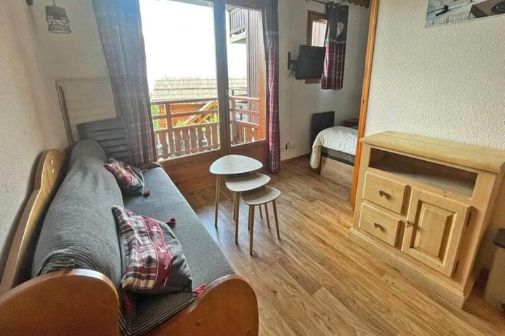 High above the picturesque slopes of Puy Saint Vincent 1800, this charming apartment in the La Dame Blanche residence offers a cozy retreat with breathtaking mountain views. Imagine sipping your morning coffee on the private balcony as the sun rises over the snow-capped peaks, or unwinding in the heated outdoor pool during the warmer months. With direct access to the ski slopes, this property is a haven for winter sports enthusiasts and a peaceful escape for summer adventurers alike. \n\nInside, the apartment is thoughtfully designed for comfort and convenience. The living room features a pull-out sofa bed, a flat-screen TV, and a dining table for shared meals. The equipped kitchen includes modern appliances such as a microwave, ceramic hob, dishwasher, and coffee maker, ensuring you have everything you need to prepare hearty meals after a day outdoors. The sleeping arrangements cater to families and groups, with a double bedroom and a cozy cabin room with twin beds, all furnished with fresh duvets and pillows. A separate bathroom and WC add to the practicality of the space. \n\nThe residence itself boasts excellent amenities, including a restaurant, snack bar, bakery, and ski rental shop right at your doorstep. During the summer, guests can enjoy the heated outdoor pool, while the sauna offers a relaxing retreat year-round. Additional services such as linen and towel rentals, a coin-operated laundromat, and covered parking ensure a stress-free stay. \n\nWhether you’re here to carve through pristine slopes in winter or explore alpine trails in summer, this apartment is the perfect base for your adventures. Let the beauty of the French Alps and the welcoming atmosphere of La Dame Blanche create memories to last a lifetime.