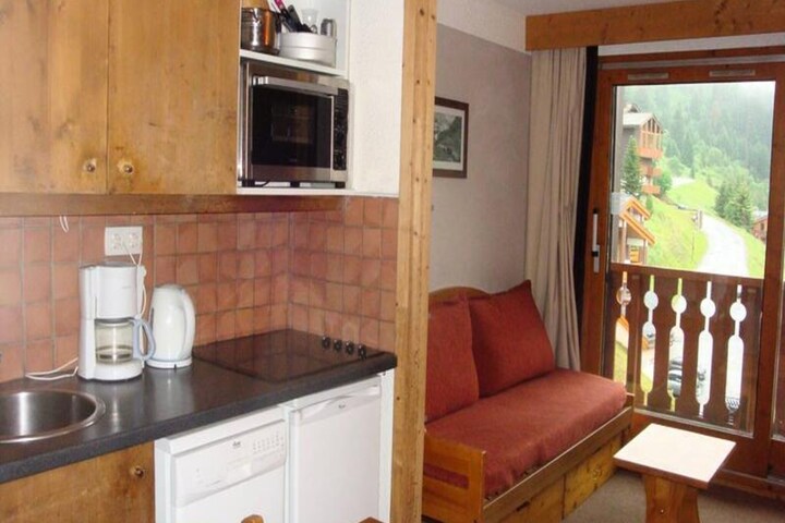 Surrounded by the enchanting beauty of the French Alps, this charming apartment in Méribel Mottaret offers a cozy retreat for your mountain adventures. Wake up to crisp alpine air and the promise of thrilling days on the slopes, with the Le Plan du Lac residence perfectly positioned for ski enthusiasts and nature lovers alike. Whether you're here to carve through fresh powder or enjoy serene summer hikes, this property provides the ideal base for unforgettable memories. \n\nInside, the apartment is thoughtfully designed to accommodate up to six guests. The living room features two sofa beds and a trundle bed, creating a welcoming space to unwind after a day of exploration. A sleeping alcove with bunk beds adds flexibility for families or groups. The kitchenette is fully equipped with modern amenities, including a ceramic hob, oven, dishwasher, refrigerator, coffee maker, and kettle, ensuring you have everything needed to prepare hearty meals. The bathroom is practical and comfortable, while the private balcony invites you to soak in the surrounding views. Additional conveniences such as an elevator and ski locker enhance your stay, and optional services like linens, towels, and baby equipment can be reserved in advance.\n\nThe residence's prime location means you're just steps away from the slopes and local shops, making it easy to access everything you need. Families will appreciate the nearby kindergarten, while the vibrant atmosphere of Méribel Mottaret offers a blend of relaxation and activity. In summer, the area transforms into a haven for outdoor enthusiasts, with trails, festivals, and breathtaking vistas waiting to be explored. \n\nChoose this delightful apartment for a seamless blend of comfort, convenience, and alpine charm, ensuring your holiday in the French Alps is nothing short of extraordinary.
