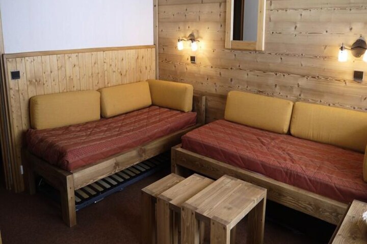 High above the picturesque slopes of Méribel Mottaret, this charming alpine apartment invites you to experience the perfect blend of comfort and convenience. Situated in the Arpasson residence in the Laitelet district, this ski-in/ski-out retreat offers unparalleled access to the pristine pistes of the Three Valleys, making it a dream destination for winter sports enthusiasts. From your private balcony, take in breathtaking views of the surrounding peaks and feel the crisp mountain air as you plan your next adventure. \n\nInside, the apartment is thoughtfully designed to accommodate up to five guests. The living room features two cozy sofa beds, a trundle bed, and a television, creating a welcoming space to relax after a day on the slopes. The separate bedroom offers a comfortable double bed, while the fully renovated kitchen (2024) is equipped with modern appliances, including electric hobs, a dishwasher, an oven, and a coffee maker, ensuring all the comforts of home. The updated bathroom and separate toilet add to the convenience, while the ski locker and elevator enhance the practicality of your stay.\n\nThe Laitelet district is a skier’s paradise, with direct access to the slopes and proximity to the Hameau shopping center for all your essentials. The free Méribus shuttle or Chalets cable car easily connects you to the vibrant center of Méribel Mottaret, where you can explore charming shops, après-ski spots, and local dining options. \n\nWhether you’re here to carve through fresh powder, explore scenic trails, or simply unwind in the serene alpine atmosphere, this apartment offers the ideal base for an unforgettable mountain getaway.