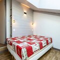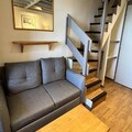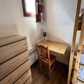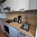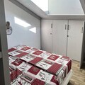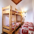 Recently refurbished in July 2023, the apartment features an entrance hall, a cozy bedroom with two single beds, a bathroom with a bathtub, and a separate toilet. The living room, complete with a balcony, is the perfect spot to unwind after a day outdoors. The fully equipped kitchen includes a dishwasher, electric hob, and combination oven, ensuring you have everything needed to prepare hearty meals. Upstairs, you’ll find a bedroom under the eaves with two single beds, a skylight, and a television, alongside a shower room with a toilet and another bedroom with bunk beds and a single bed, accommodating up to three guests.