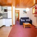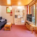Inside, the apartment is thoughtfully designed for comfort and convenience. The master bedroom features a cozy double bed, while the second bedroom is equipped with a bunk bed, making it ideal for families or small groups. The bathroom includes a bathtub for relaxing soaks after a day on the slopes, and there’s a separate toilet for added privacy. The open-plan kitchen flows seamlessly into the spacious living and dining area, where a comfortable sofa and television invite you to unwind after your adventures.