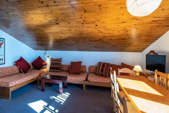 High above the picturesque slopes of Méribel Mottaret, this inviting apartment welcomes you to a world of alpine charm and convenience. Set on the 6th floor of the Le Boulevard residence in the Laitelet district, it offers breathtaking views and direct access to the ski slopes, making it a perfect retreat for winter sports enthusiasts. Whether you're here to carve through fresh powder or simply soak in the serene mountain atmosphere, this property promises an unforgettable stay in the heart of the French Alps. \n\nInside, the apartment comfortably accommodates up to six guests with thoughtful sleeping arrangements including three sofa beds in the living room, a cozy bedroom with two single beds, and a sleeping alcove with two additional single beds. The separate kitchen is fully equipped with modern appliances such as an electric hob, dishwasher, microwave, refrigerator, kettle, toaster, and coffee maker, ensuring you have everything needed to prepare hearty meals after a day on the slopes. A private balcony invites you to unwind with a cup of coffee while admiring the stunning alpine vistas. Additional amenities include a ski locker, elevator access, and optional services like linens, towels, end-of-stay cleaning, and baby equipment. \n\nThe Laitelet district is a skier’s paradise, with all residences offering easy access to the slopes. Nearby, you'll find a mini-market, sports shops, restaurants, and bars, ensuring all your needs are met within walking distance. For added convenience, the Chalets cable car and free Méribus shuttles provide seamless access to the center of Méribel Mottaret, where even more dining and entertainment options await. \n\nWhether you’re seeking thrilling ski adventures or tranquil moments surrounded by snow-capped peaks, this apartment is your gateway to the magic of Méribel Mottaret. Book your stay and create lasting memories in one of the most iconic ski destinations in the world.