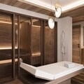Spanning two levels, the property boasts six beautifully appointed bedrooms, each with its own en-suite facilities, ensuring privacy and comfort for up to 12 guests. The centerpiece of the expansive 90m² living area is a sleek ethanol fireplace, surrounded by plush seating and a dining space that opens onto a 23m² terrace. The state-of-the-art kitchen is fully equipped with high-end appliances, including a wine cooler for après-ski indulgence. Additional luxuries include a private sauna, a ski locker with boot dryers, and two covered parking spaces with an electric charging point.