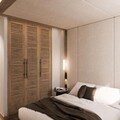 Inside, the apartment is thoughtfully designed to accommodate up to six guests across three luxurious bedrooms, each with its own en-suite bathroom. The open-plan living and dining area, complete with an electric fireplace, invites you to unwind after a day on the slopes. The fully equipped kitchen, featuring high-end appliances and a wine cellar, is perfect for preparing meals to share with loved ones. Additional comforts include a private sauna, a laundry room, and a ski locker with boot dryers, ensuring every detail of your stay is seamless.