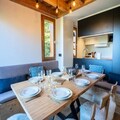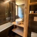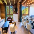 Spanning two levels, the 75 m² apartment has been thoughtfully designed to accommodate up to ten guests. On the ground floor, you’ll find a welcoming entrance hall with boot dryers, a ski storage room, and a cozy living area complete with a sofa, TV, and dining table. The fully equipped kitchen includes everything you need to prepare hearty meals after a day on the slopes, from a refrigerator and oven to a coffee machine and toaster. Upstairs, three inviting bedrooms await: two double rooms and a bunk room that sleeps four. Additional conveniences include three modern bathrooms, a washer-dryer, and ample storage space for all your belongings.