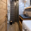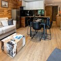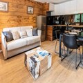 The apartment features an open-plan kitchen and living area, creating a spacious and inviting atmosphere. The bedroom boasts a comfortable double bed (140cm) and an en-suite bathroom with a sleek shower. For additional guests, the living room offers a sofa bed, ensuring flexibility for small families or groups. Modern amenities include Wi-Fi, a flat-screen TV, a Nespresso machine, and even a raclette and fondue set for those cozy evenings in. A ski locker on the ground floor adds convenience, and parking is available just 100 meters away at Dou du Pont.