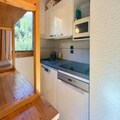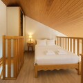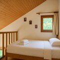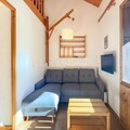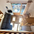 Inside, the apartment is thoughtfully designed for comfort and functionality. The open-plan kitchen, living, and dining area creates a warm and inviting space to relax after a day on the mountain. A cozy bedroom with a double bed and a separate bathroom with a bathtub are located on the main level, while the mezzanine above the living room offers additional sleeping arrangements with a double bed and a single bed. Modern amenities such as a dishwasher and a filter coffee maker ensure a stress-free stay, while the provided bed linens and towels add an extra touch of convenience.