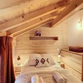 Step inside to discover a thoughtfully designed space that caters to every need. The ground floor boasts an open-plan kitchen equipped with top-of-the-line appliances, including an induction hob, Nespresso machine, and wood-burning stove, perfect for cozy evenings. The living room, with its video projector and large screen, opens onto a sunlit south-facing terrace, inviting you to relax after a day on the slopes. Upstairs, the bedrooms are a haven of comfort, with en suite facilities, bunk beds for the kids, and even a cot for the youngest family member. Practical amenities like ski lockers, boot dryers, and a washing machine ensure a seamless stay.