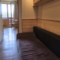 The studio is thoughtfully designed to maximize comfort and functionality. The living room, bathed in natural light, features a flat-screen TV and a double sofa bed, while the cabin bedroom offers snug bunk beds, making it ideal for couples or small families. The open-plan kitchen is fully equipped with electric hobs, a mini-oven, microwave, refrigerator, and dishwasher, ensuring you have everything needed to prepare hearty meals after a day on the slopes. A bathroom with a bathtub and a separate toilet add to the convenience, while the mountain-inspired decor creates a warm and inviting atmosphere.