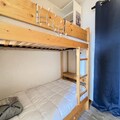 The studio features a bright living room with a television, an open-plan kitchen equipped with a refrigerator, dishwasher, microwave, and induction hob, as well as a sleeping area with a double sofa bed and single bunk beds. The bathroom includes a bathtub, and there is a separate toilet for added comfort. Step out onto the sunny balcony to take in the breathtaking views of Mont Charvin, a perfect spot to enjoy your morning coffee or unwind after a day of adventure. Additional amenities include a ski locker, private outdoor parking, and a peaceful setting that ensures restful nights.