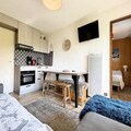 Designed for up to six guests, the apartment is most comfortable for four, ensuring a spacious and enjoyable stay. The layout includes a welcoming living area with a sofa bed, a fully equipped open-plan kitchen, and a charming bedroom with a double bed and dressing room. The alcove with bunk beds adds a playful touch for younger guests. Modern amenities such as a washing machine, television, and a private ski locker make your stay convenient and stress-free. The residence also boasts dedicated parking for added ease.